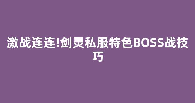 在剑灵私服中,特色BOSS战是一个非常重要的组成部分。这些强大的BOSS拥有极高的战斗力和独特的攻击方式,需要玩家们进行精心的策略和配合才能击败它们。下面我们就来详细介绍一下剑灵私服特色BOSS战的技巧,帮助你更好地体验这种刺激和乐趣。